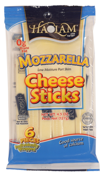 Haolam Cheese Sticks are available in 5 oz./6 sticks per package. Currently Cheese sticks are available in Pepper Jack, Pizza Flavored and American Cheese.
