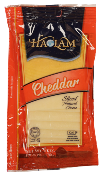 Haolam American cheese is available in 3 pound 108 slice loaf, indivual wrapped slice 8 oz and 12 oz. Also available is a reduced fat American cheese. Haolam American cheese is also available in 5 pound brick and 42 pound block.