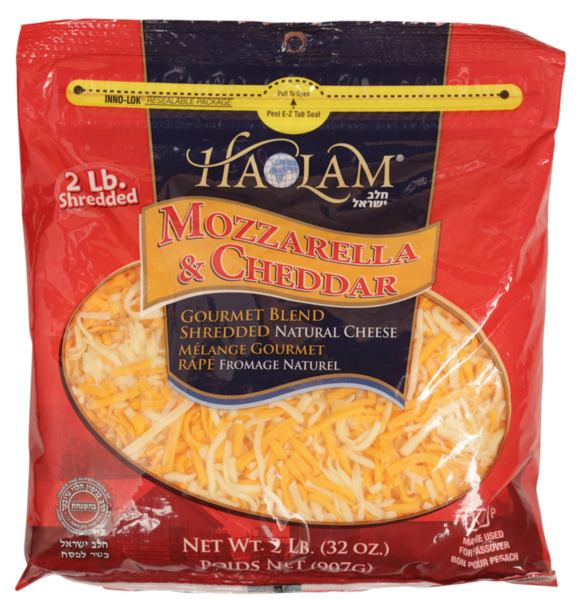 Haolam has available a variety of shredded cheeses in 8 oz, 16 oz, 32 oz and 5 pound bags.